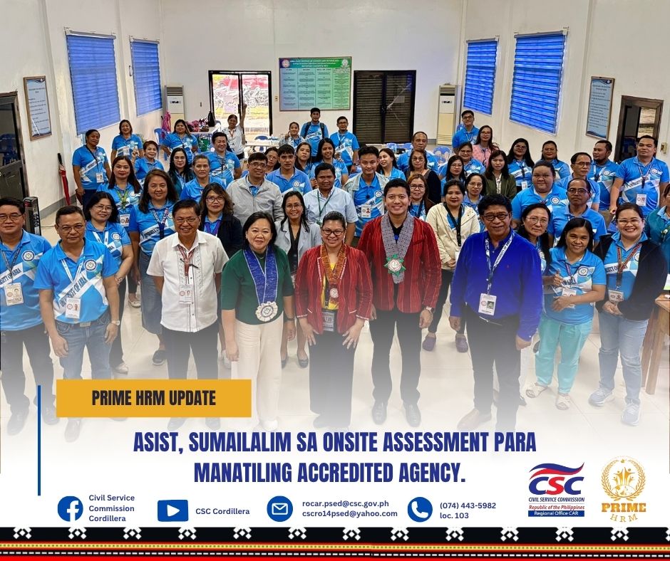 Sumailalim sa onsite assessment ng Policies and Systems Evaluation Division (PSED) ng Civil Service Commission – Cordillera Administrative Region (CSC-CAR) ang Abra State Institute of Science and Technology (ASIST). Ito ay bahagi ng layunin na mapanatili ang kanilang pagiging accredited agency sa ilalim ng Program to Institutionalize Meritocracy and Excellence in Human Resource Management (PRIME-HRM).